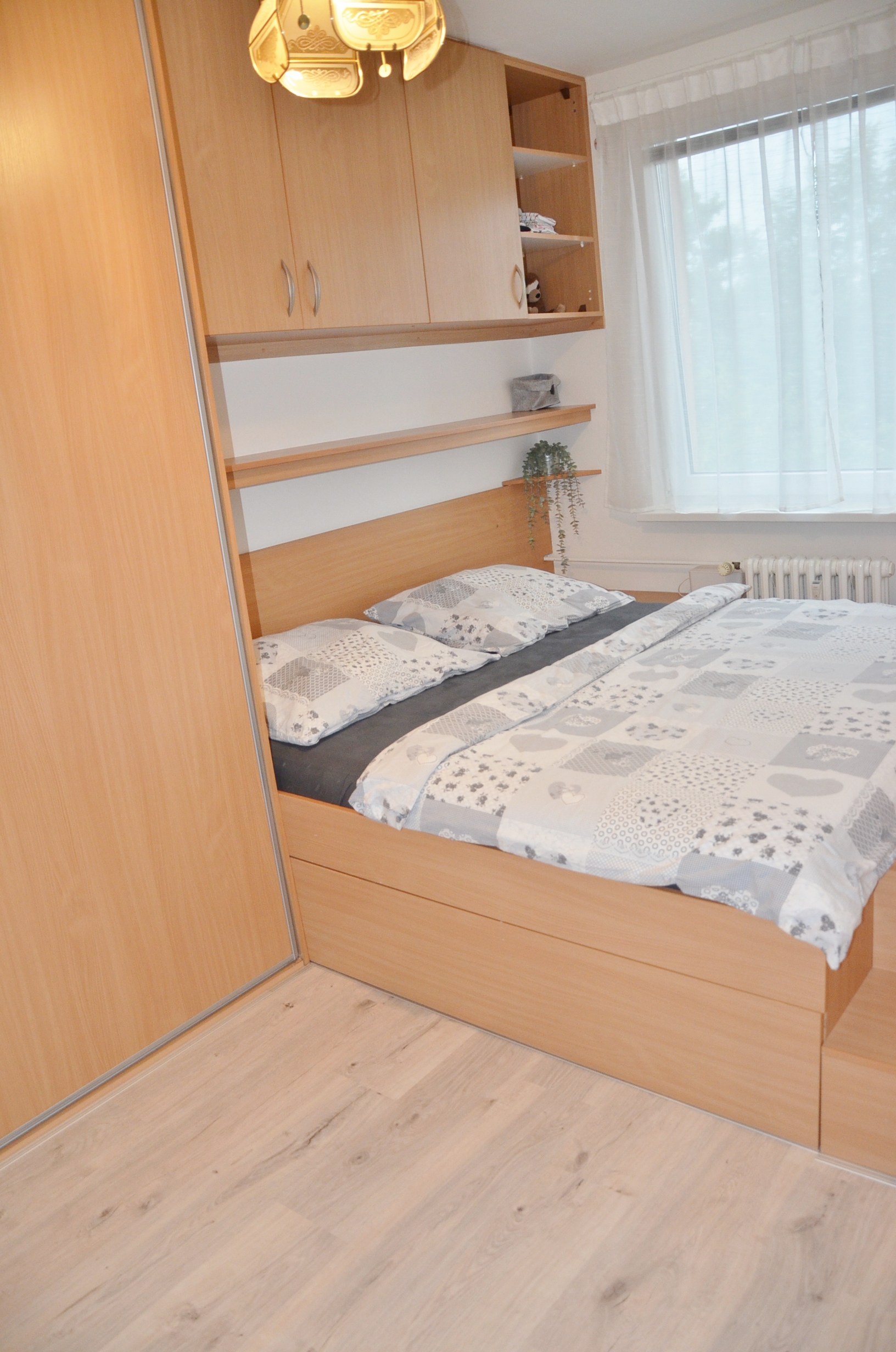 Nabízíme k pronájmu velmi prostorný byt o velikosti 4+1/L (93m2) v Praze 4 Modřanech v Petržílově ulici. Byt je situován v 1.patře nízkopodlažního domu. Popis: všechny pokoje jsou samostatné se vstupem z předsíně. Byt je kompletně po rekonstrukci, na podlahách plovoucí podlahy + dlažba, v koupelně rohová vana a WC samostatné. Z vybavení k dispozici bude: kuchyňská linka se sporákem, myčka, lednice, pračka se sušičkou, v kuchyni jídelní stůl + židle, v ložnici vestavěná postel se skříněmi na míru, jinak obývací pokoj a dvě ložnice bez vybavení. Západní a východní orinetace. V bytě je menší komora. V okolí vysoká občanská vybavenost a dobrá dostupnost MHD, zastávka 50m- BUS 150 na metro C Kačerov či 500 m- BUS 165 metro C Háje. Ostatní požadavky majitele po kontaktování.